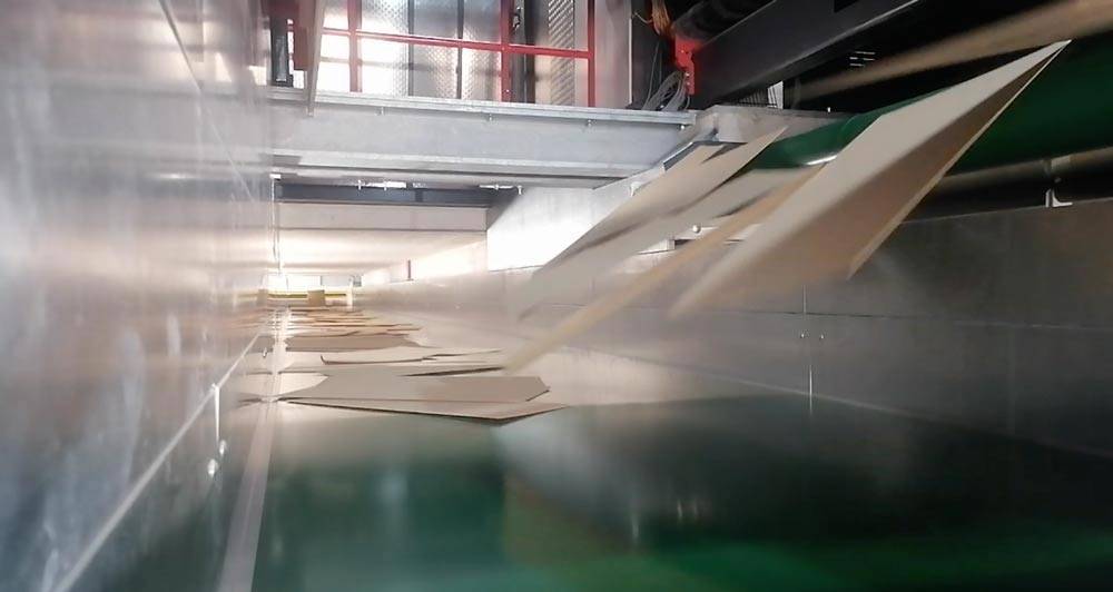 Kontinuierliche, automatische Abfuhr der Wellpappeabfälle ohne Produktionsunterbrechung.